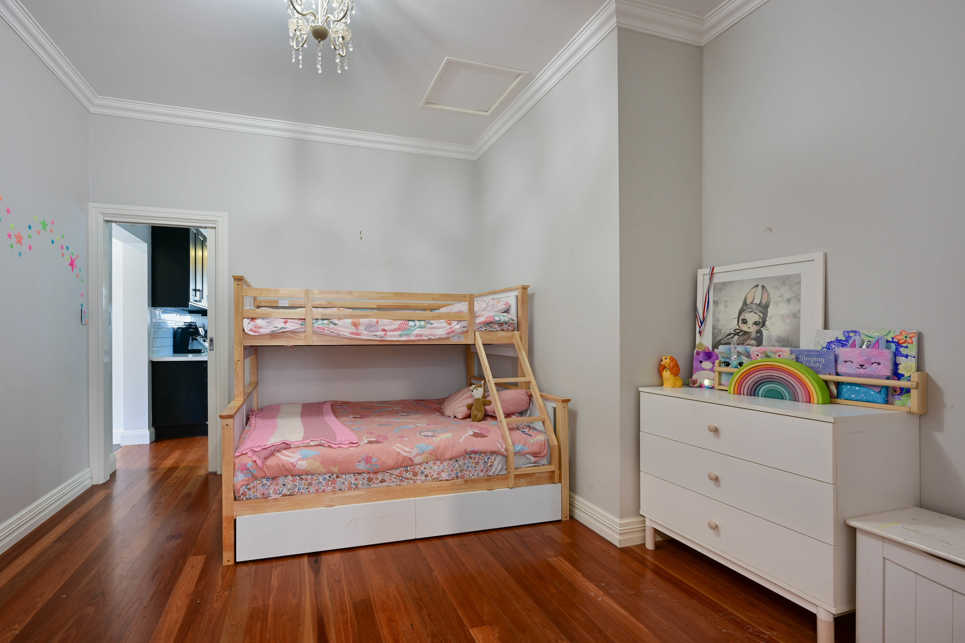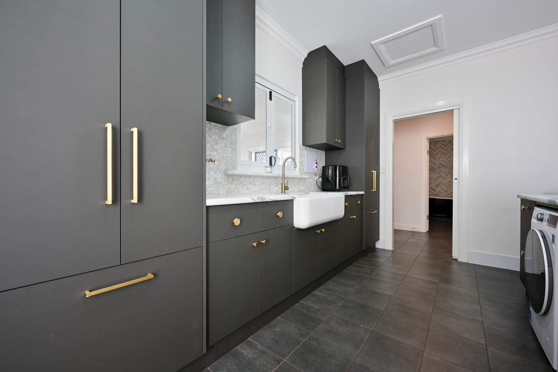 Second bedroom with adjoining playroom/walk-in robe Third carpeted bedroom Large tiled 4th bedroom/second living room/games room Master bathroom featuring beautiful herringbone tiles, freestanding bath, walk-in shower and dual sink vanity with Bluetooth stereo