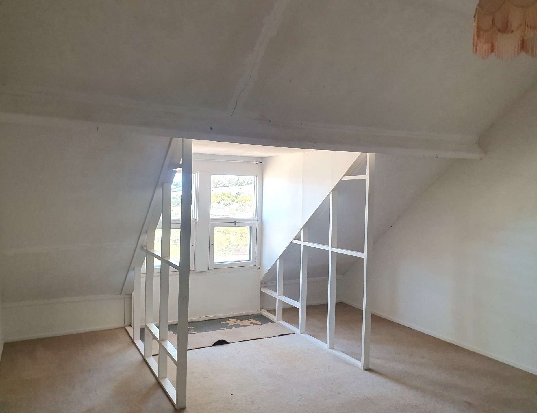 At the top of the stairs is a lovely open living room with natural soft filtered light setting the ambiance through panoramic windows that frame the lovely view. Two upstairs character bedrooms feature built in storage and pitched ceilings.