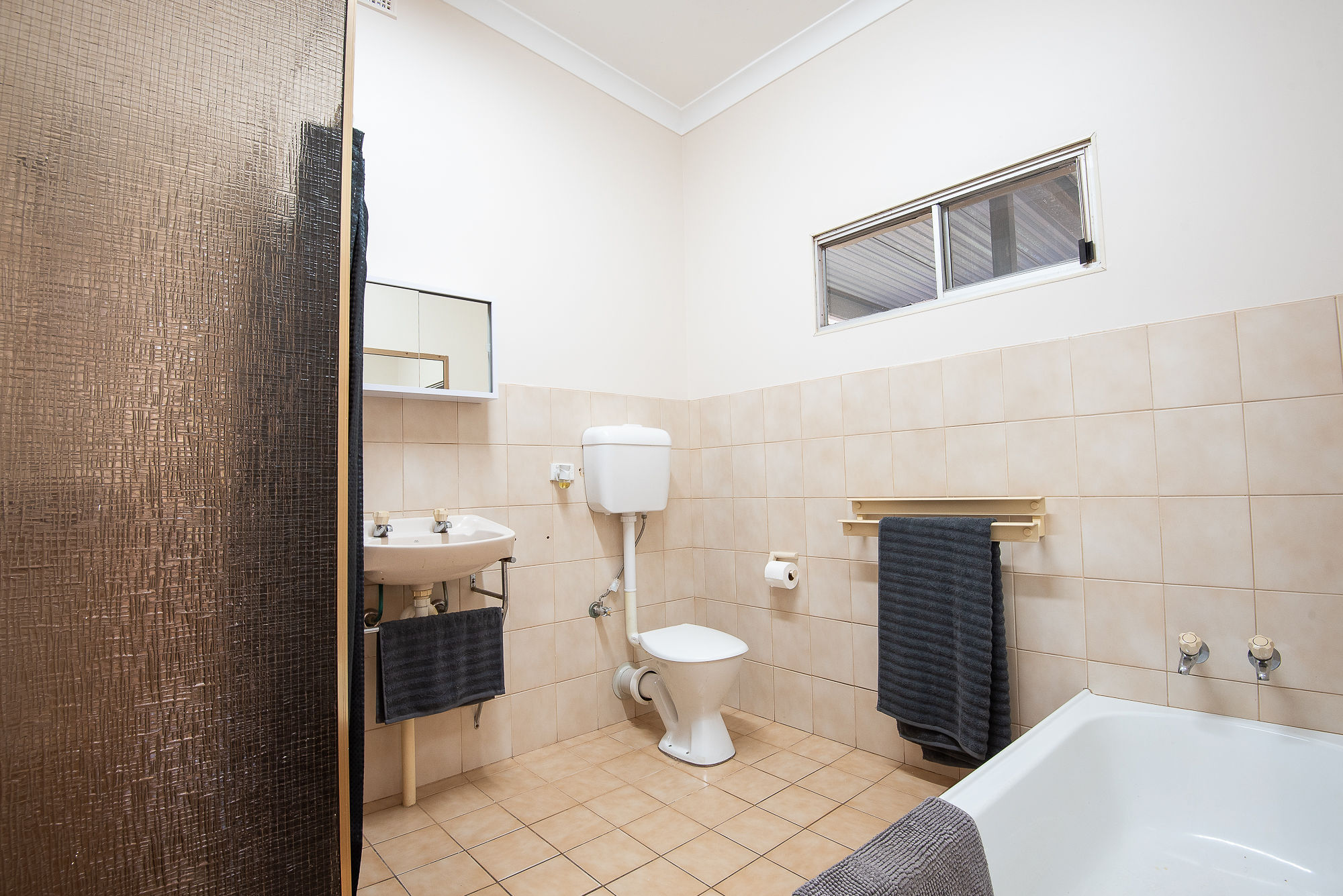 Continuing through to the great size kitchen with everything you need, to be able to cook and enjoy entertaining from all aspects of the home. The fantastic size bathroom with shower, bath, vanity and toilet and the seond toilet is located outside off of the deck area.