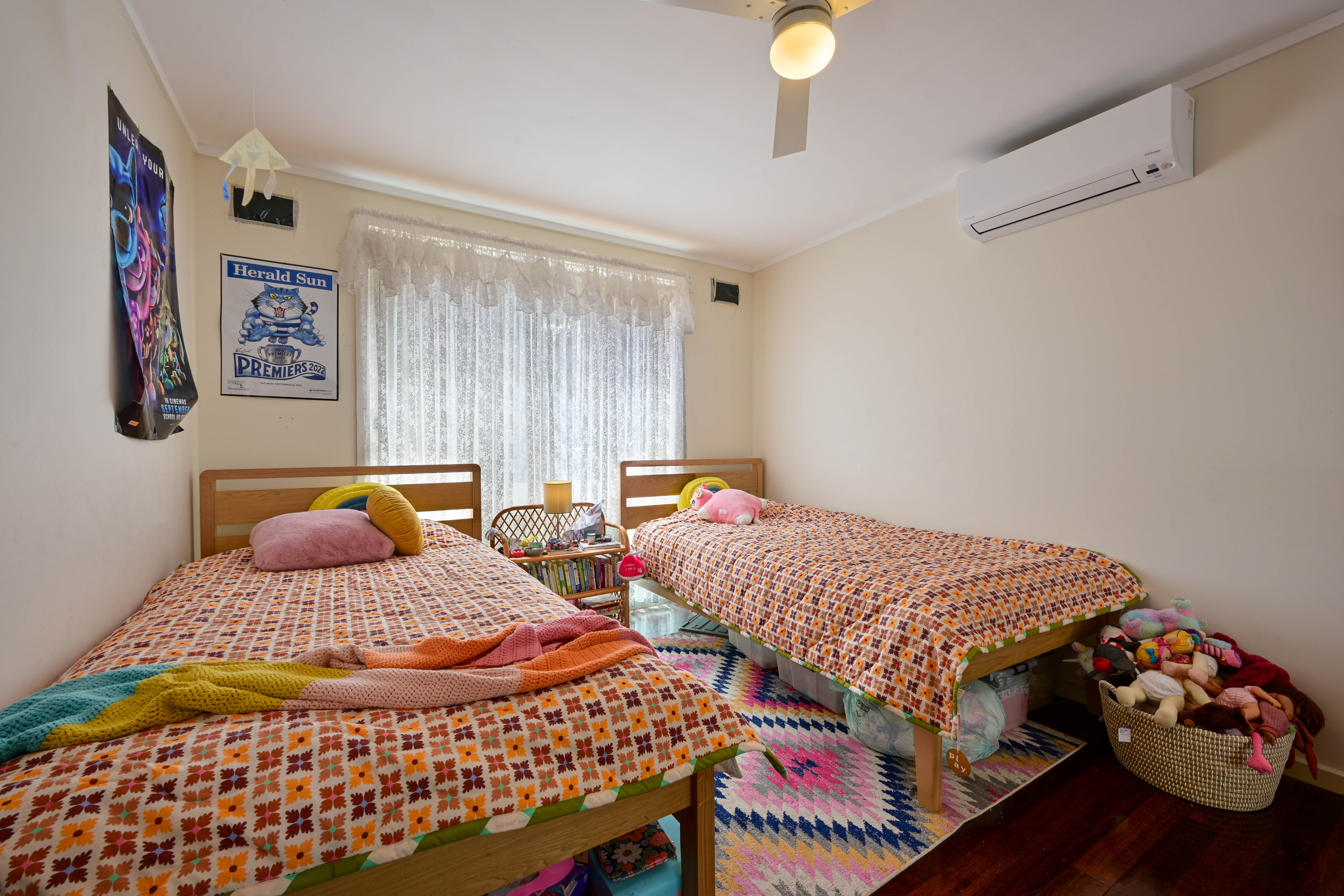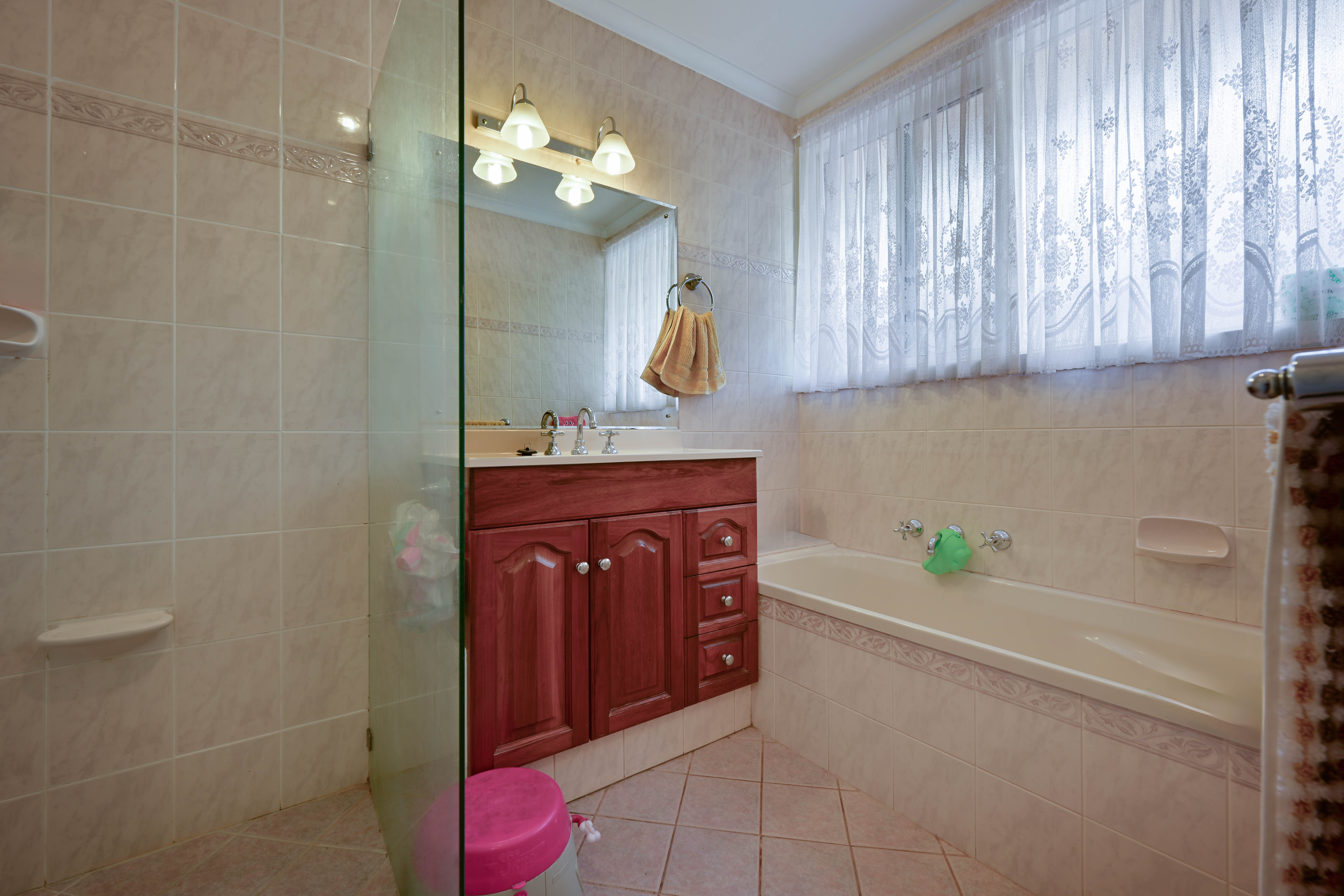 This home places four generous size bedrooms with bedrooms 1-3 complete with exterior roller shutters, curtains, ceiling fans and finished with timber floorboards to compliment each room. Bedroom one and two complete with built in robes whilst bedroom 1 also has a split system air conditioning. You'll find the fourth bedroom through the laundry finished with tiled flooring, great size windows with curtains and a glass sliding door leading to the rear outdoors. The main bathroom is of great size and features a walk-in shower, bathtub and vanity.