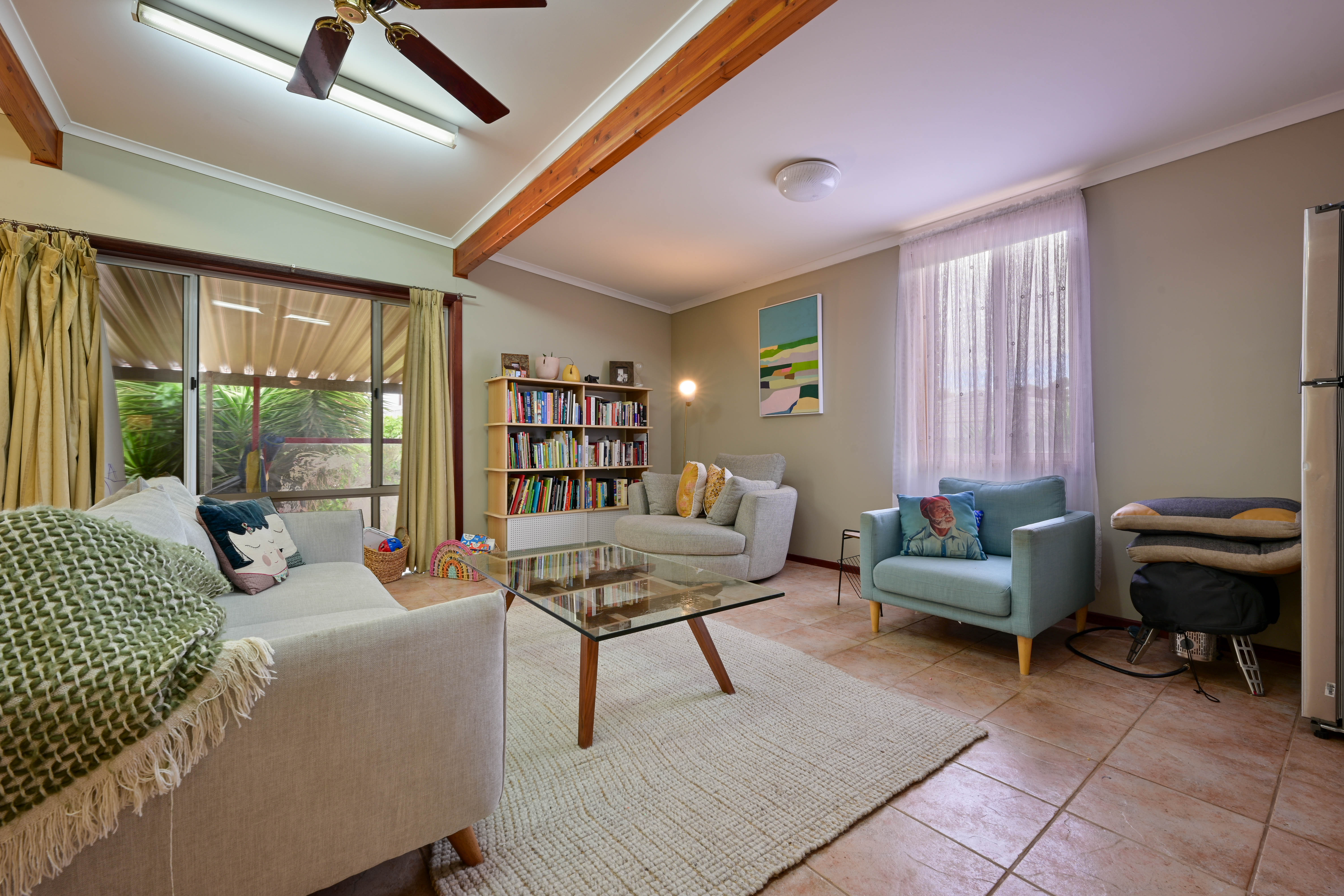 Continuing down the entryway you are met with the great size living and dining room for the whole family to enjoy. This area of the home is complete with tiled flooring, ceiling fans, split system air conditioning plus nice size windows and a glass sliding door with views of the outdoor entertaining and rear yard.