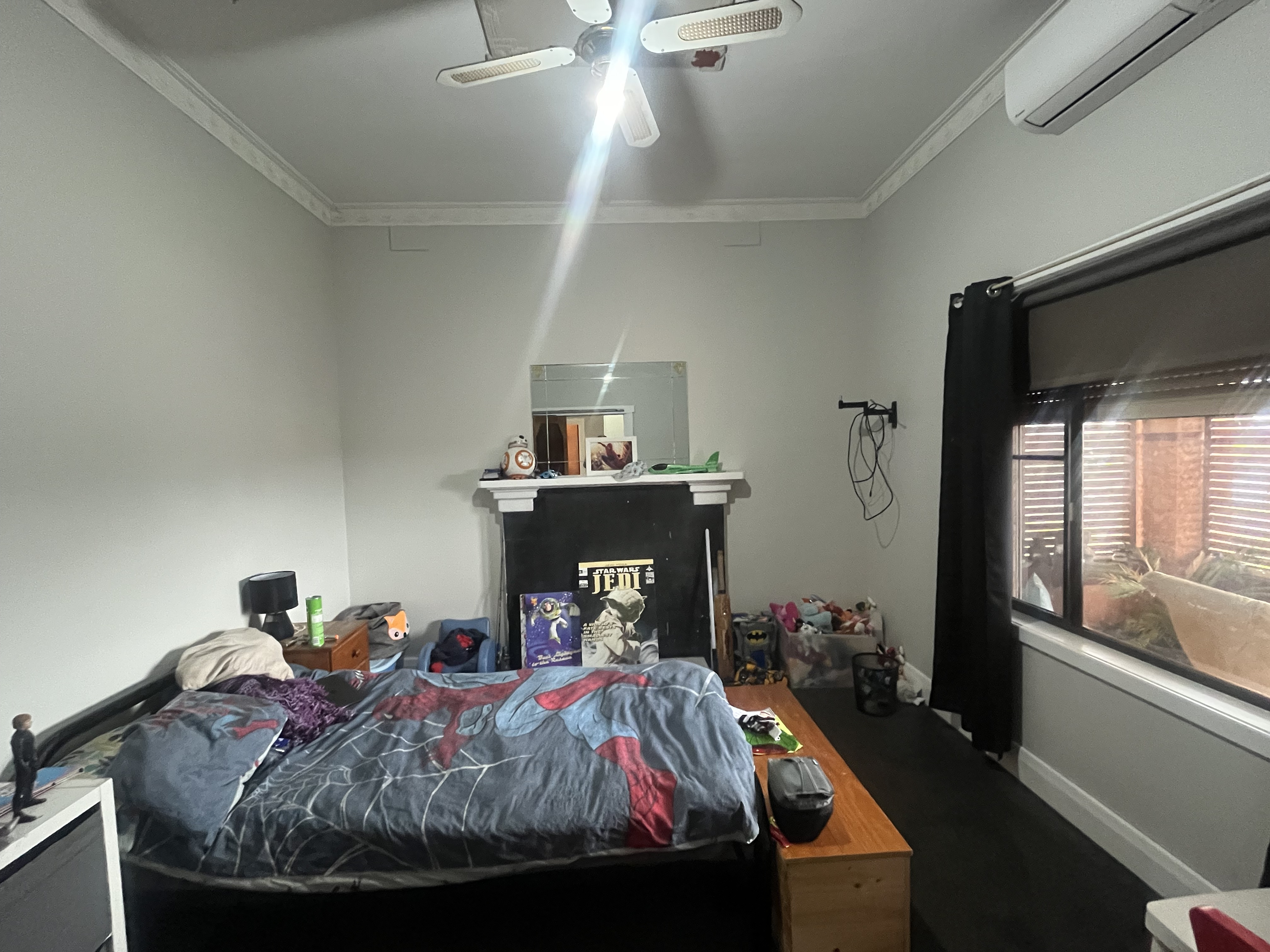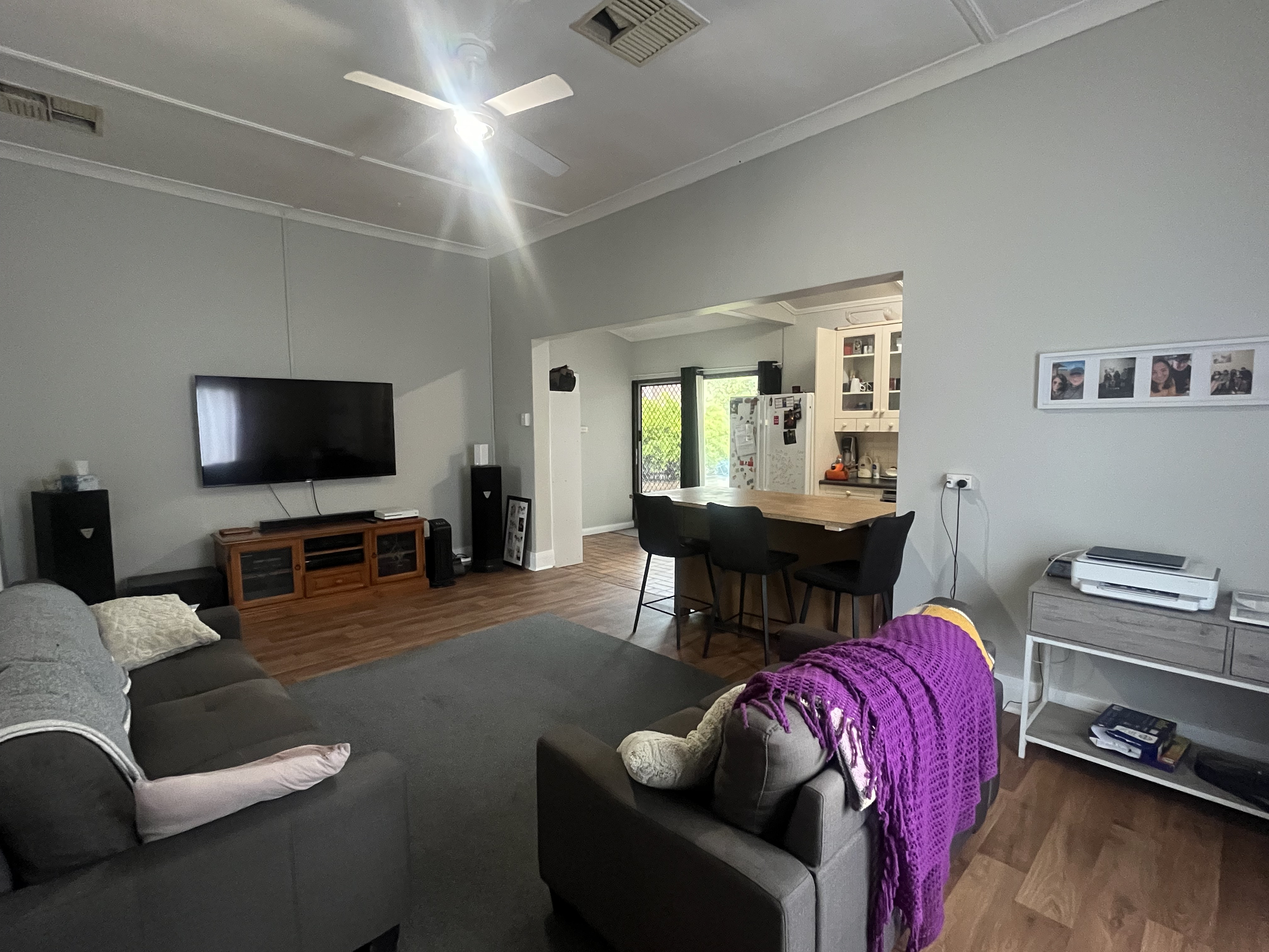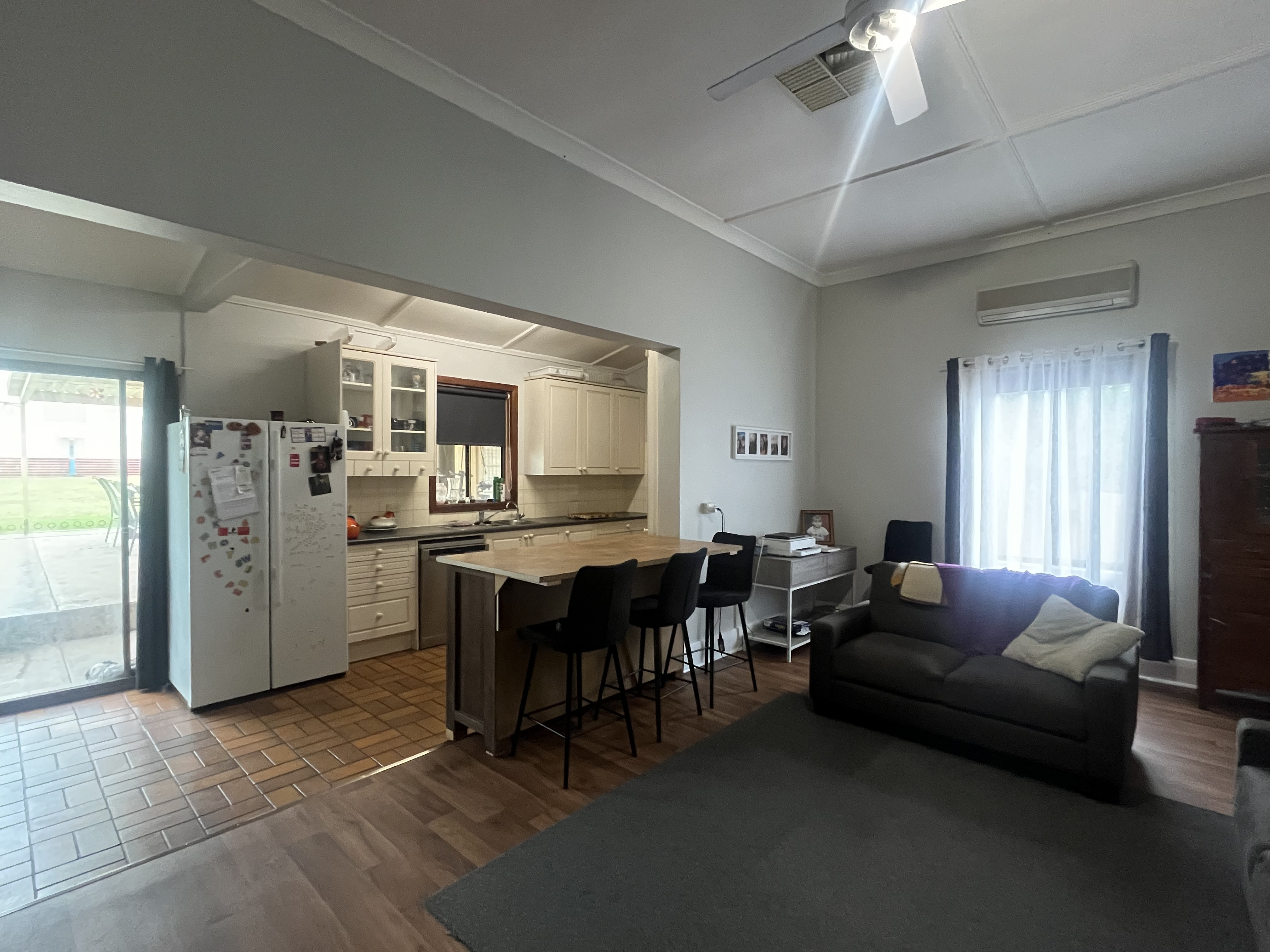 Upon entry you will notice the beautiful high ceilings to the entryway finished with polished timber floorboards. From here, opens up to a spacious open plan living, dining and kitchen area. Filled with natural lighting from the good size window complete with curtains, a ceiling fan and split system.