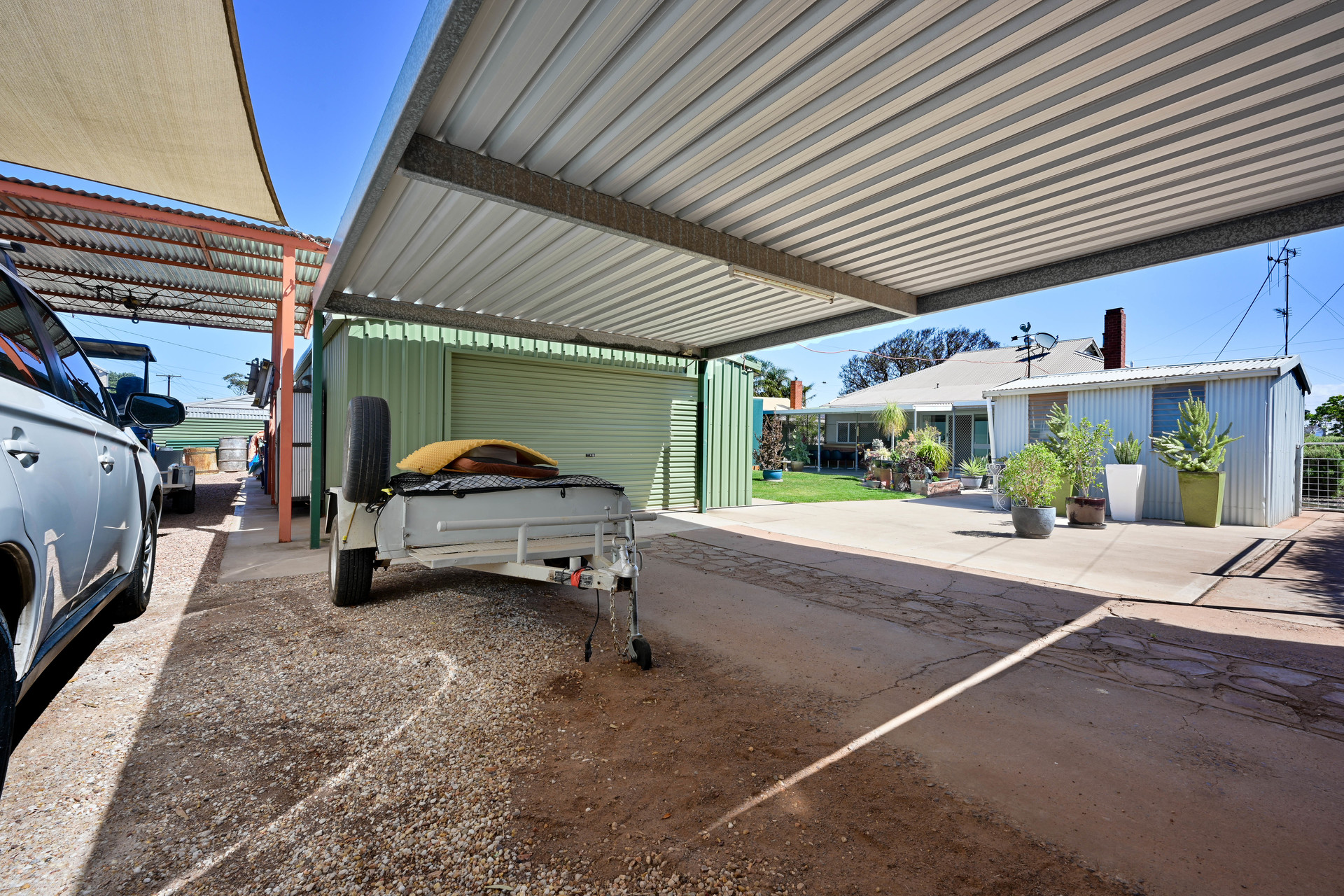 Front L shape porch for the early morning coffee or evening wine Entry to generous sized lounge room with heater Kitchen and meals with ample storage and electric oven Three bedrooms, two with ceiling fans Master bedroom with large built-in robe Air conditioning to most rooms Security roller shutters to most rooms Tiled bathroom with walk-in shower Laundry with ample built-in storage Rear verandah Garden shed Established front and rear gardens Large colorbond shed with roller door, combustion heater and adjoining tool shed Two electric roller doors to side street with dual carports, one extended height for boats, caravans etc