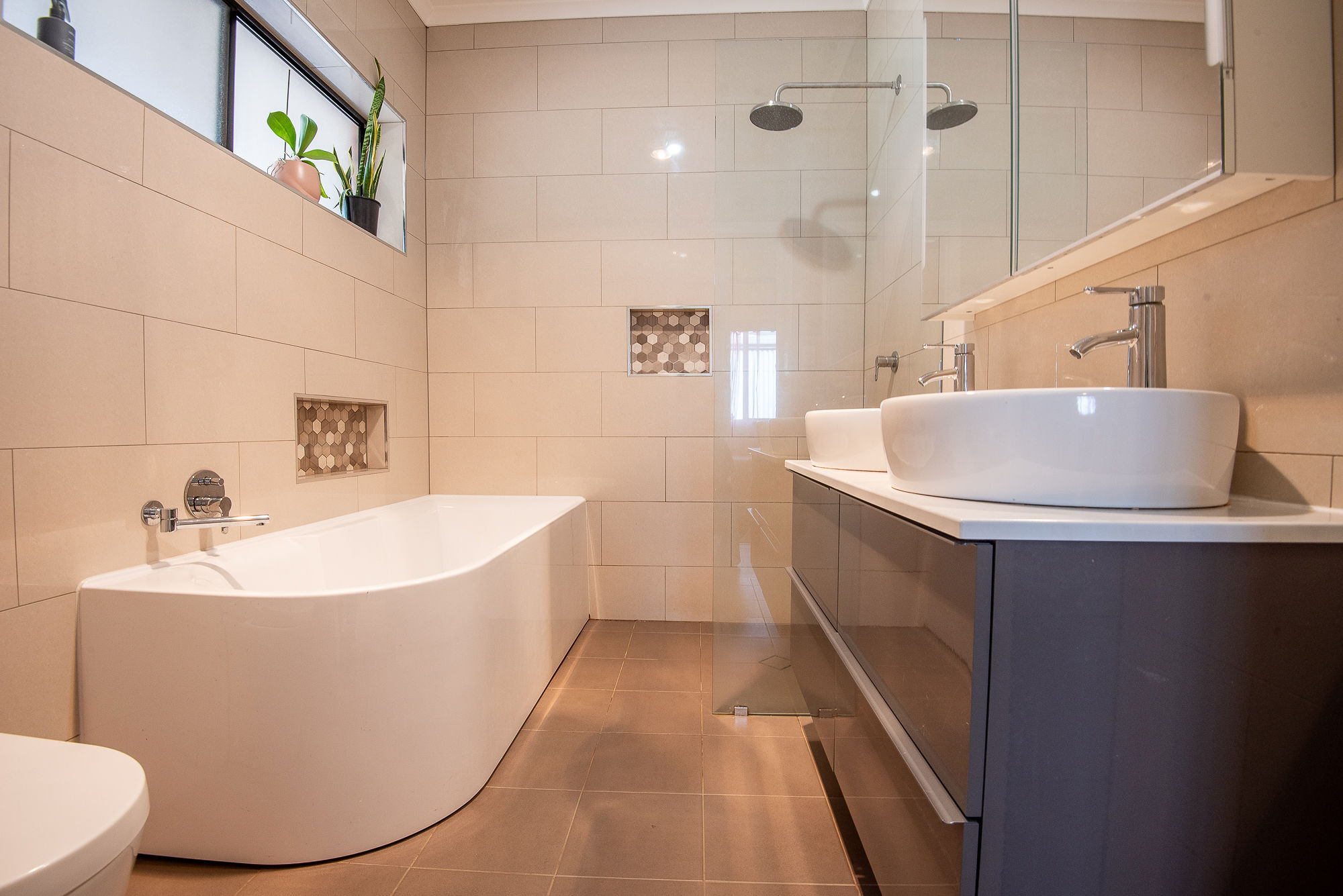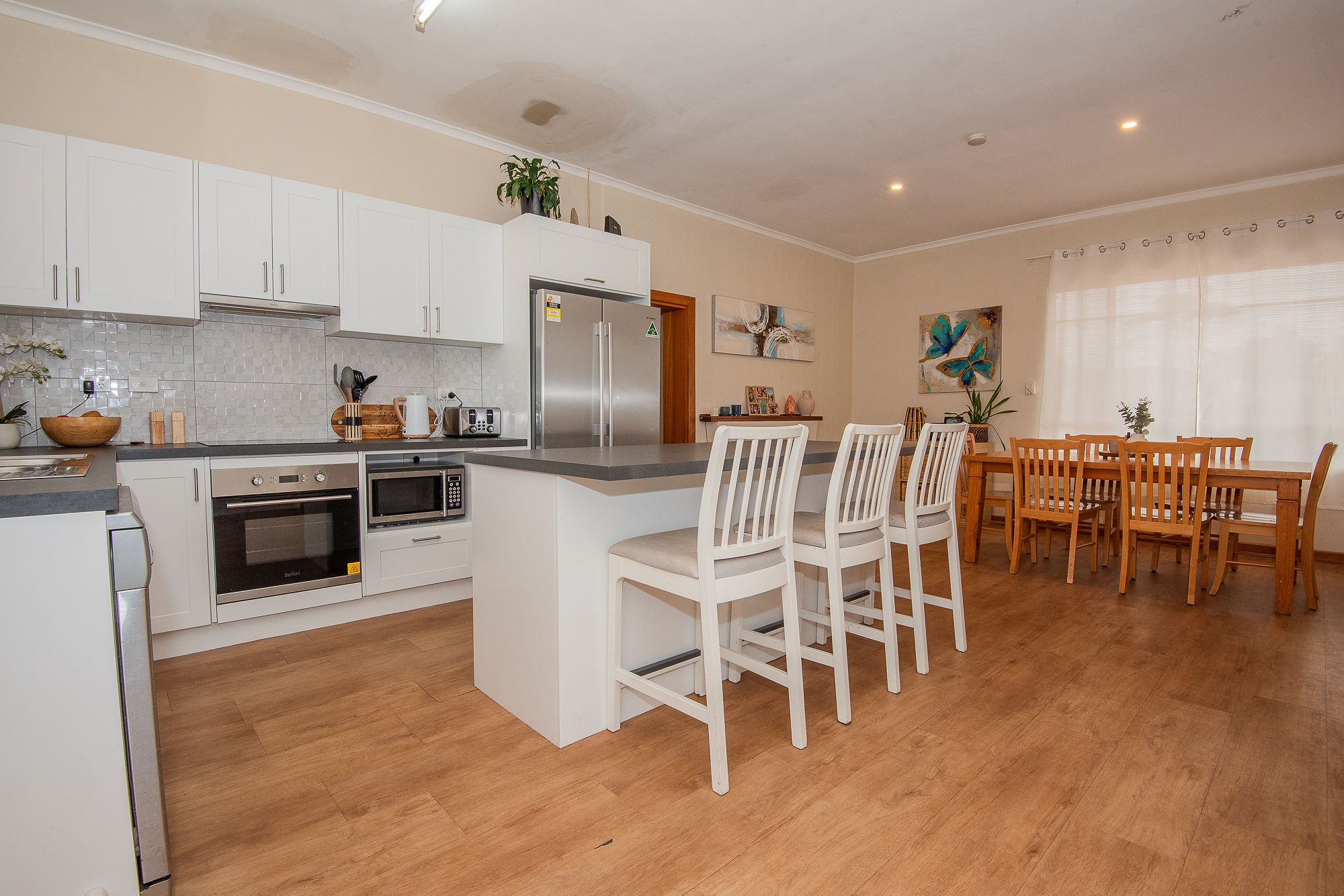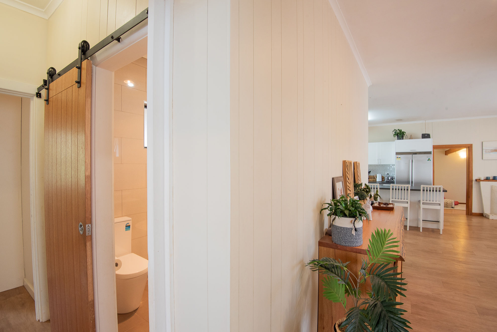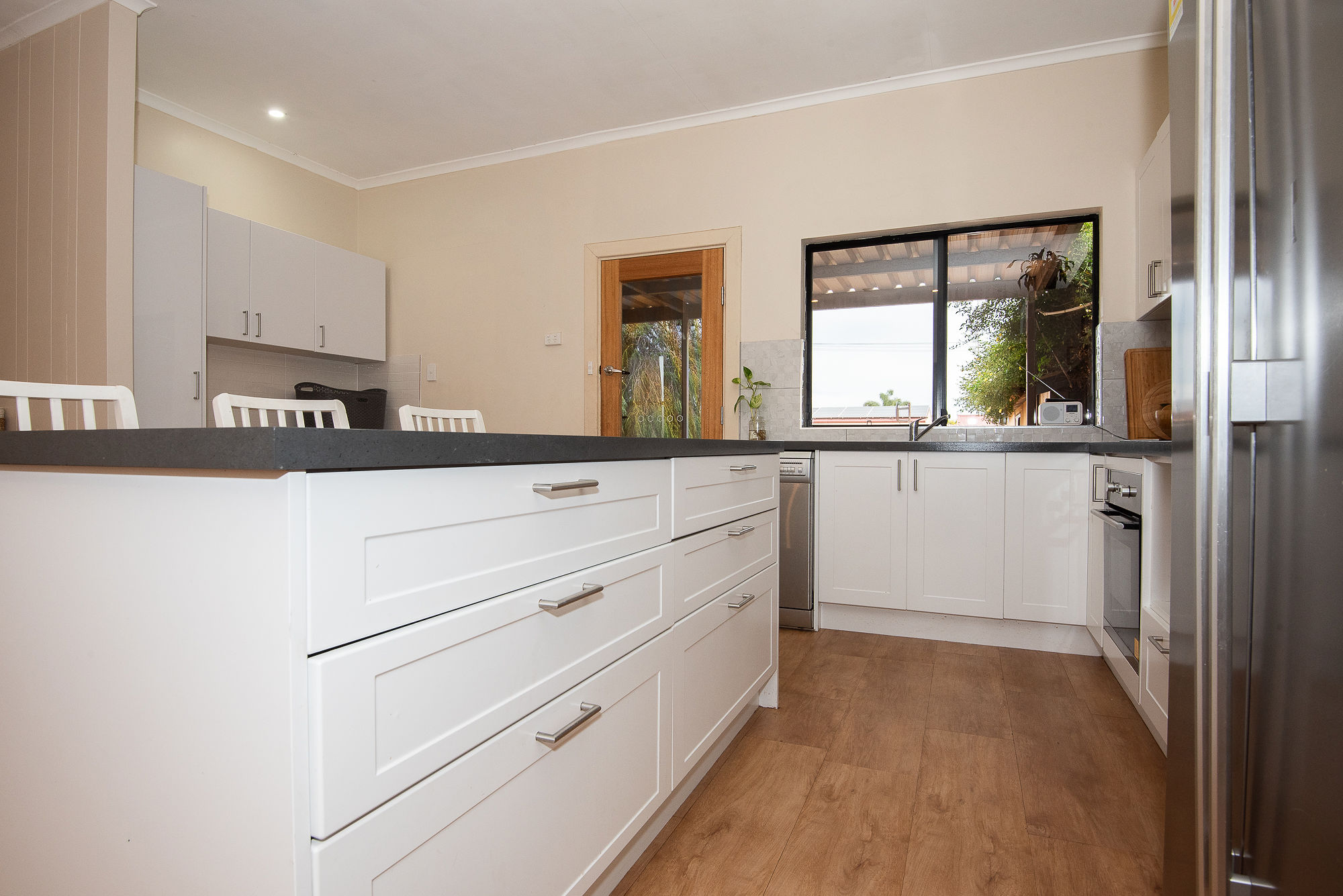 with the upgraded open plan kitchen in the heart of the home to be able to enjoy the entire indoors and outdoors all whilst in the kitchen, Stepping down into the great lounge room filled with natural light from the front and back and at the other side you have 3 great size bedrooms with two having Built in robes and the incredible upgraded bathroom will take your breath away. Extra bonus of the roller shutters across the front for extra privacy, security and great if you are a shift worker.